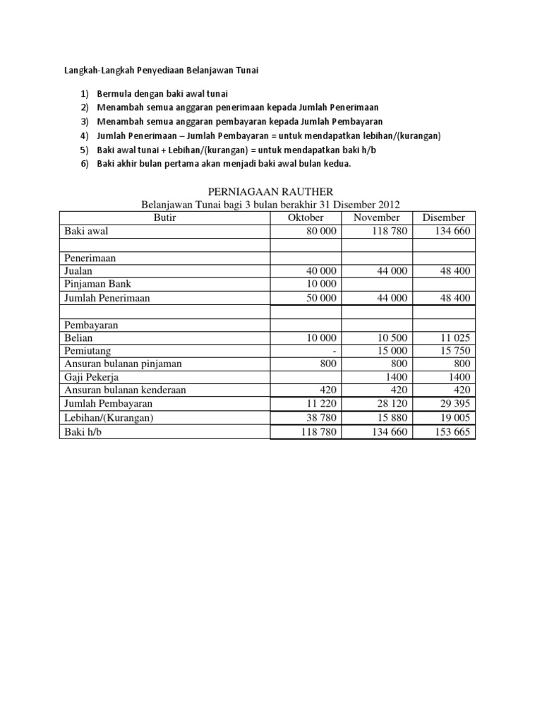 Membantu pihak pengurusan mencari sumber tunai sekiranya berlaku kekurangan tunai. Jualan 45 000 49 500 54 450 2 Akaun Belum Terima 9 500 20 500 21 525 3 Jualan Perabot 10 000 1 Jumlah Penerimaan 54 500 80 000 75 975 Pembayaran. Soalan 2 berdasarkan sama ada baru memulakan perniagaan baki awal kosong atau sudah menjalankan perniagaan ada baki awal.