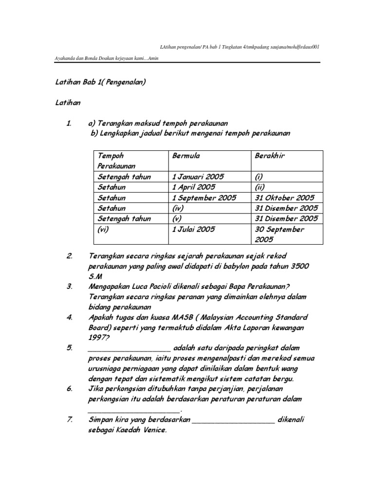 Prinsip Perakaunan Tingkatan 4 Bab 4 Latihan Dan Jawapan Ke Joglo